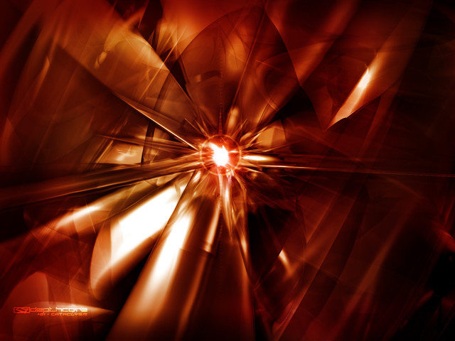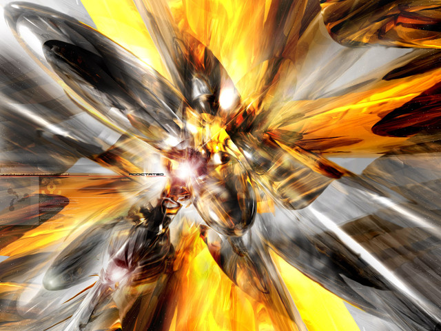 hmm, very nice piece of art though it's a bit too busy for my personal wallpaper tastes... there's no real well defined focal point.. I mean, I know there's those spheres or torusii in the center, but they're a bit abstract to really lock my eyes there when there's an explosion of action on all other sides as well. The grid's fine in my opinion, no problem there. I dunno, I do like this, not to take anything away, but I don't really see anything that brings it head and shoulders over the competition, you know? It's a very good, solid wallpaper, just seems to me it needs one more aspect to totally knock my socks off... dunno what that is though, heh