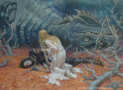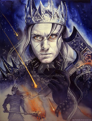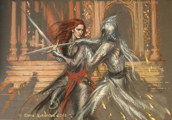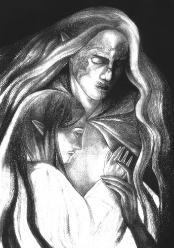 Как я люблю Финрода и его безумный поход за этими камнями!!! Это один из самых реальных эльфов в мире мистера Толкина! Мне нравится акцент только на лицо и волосы, а все остальное как бы растворяется, смешивается с пространством.....Такое холодное, бесстрастное к страданиям лицо...кровь на руке Финрода, красноватые блики на руке врага, цепь....Супер! Спасибо!)