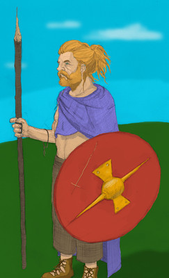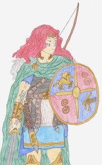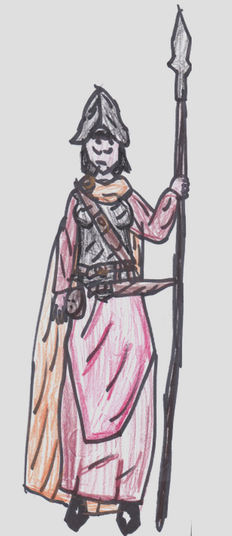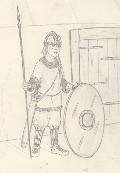 I was drawing Athena while watching the HBO series Rome. That image is still in progress. But then I wanted to do an Athena-like version of Freja. So this is a Vendel-era Freja. She wear a peplos-style garment. Her cape is red, beacause of roman-style ''blood won't show''. There are no direct evidence of women dressing like this, but there are some graves where it is possible that women have been burried with helmets, for example in the eastern burial mound in Gamla Uppsala. I write a bit about women and helmets during the Vendel era in my Master dissertation in archaeology, but as I said there is clear evidence.If someone want to read my dissertation (it is written in swedish, it do have some images, but not enough and it has an abstract in english) it is available online at: