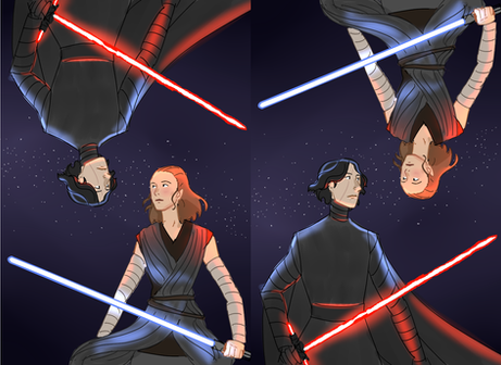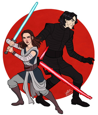 Ten rysunek dal mi w kosc XD wstepny szkic byl swietny, ale kolejne wersje juz nie, pomylily mi sie strony no i miecze byly wyzwaniem... taaa^^'' no ale grunt ze juz mam go z glowy... kiedys pewnie bede go poprawiac ale na razie musi wystarczy to co jestRey i Ren from Star WarsΒ