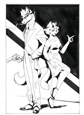 Stary rysunek, ktory w koncu zdecydowalam sie skonczyc :>Lubie ta kreskowke (chwilami kroluje w niej czysty absurd XD) i tak jakos z tego lubienia wymyslam mi sie kryminalno-sensacyjna historia z ferajna w mrocznym noirowym klimacie XD