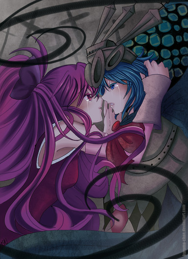 na wlosach dziewczyny sa dwa gradienty (czerwony z pomaranczowym i fiolet z czernia) co faktycznie dalo interesujacy efekt ^^