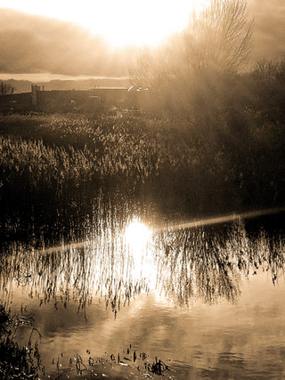 yeah, calmly warm colors, nice clarity, the contrast of the sun and trees goes nicely, and the reflection is awesome as well.