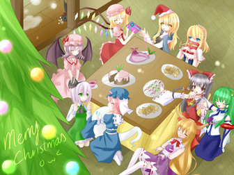 Anyway I chose to draw Chen as Little Red Riding Hood and Momiji as the wolf. Mystia and Tewi are also (sort of) in the picture~