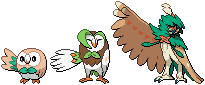 The first Rowlet evolution I actually like and makes me even consider choosing it (still Team Litten). It's final form looks cool and somehow still cute. Not too over or under done. I love this.