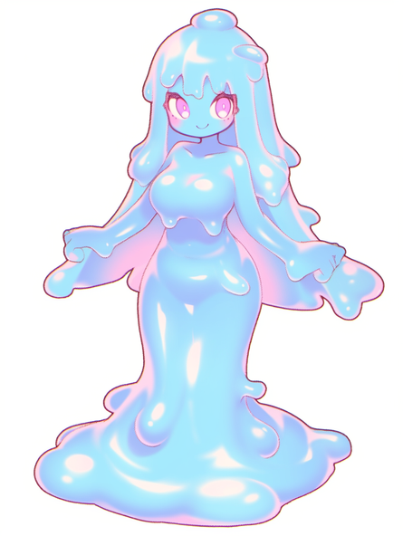I think you did a good job of rendering the translucent look; its important she look translucent rather than transparent, as she does need to be in a solid enough state to be considered a figure. The way the goo is running down her form gives a good sense that she's not completely solid.