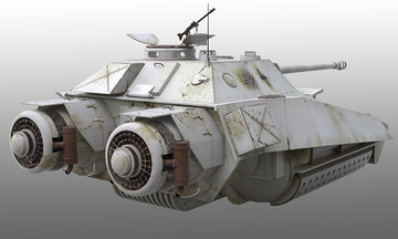 It has a main large-calibre main gun in a rotating turret and a secondary machine gun.