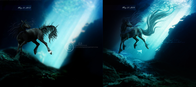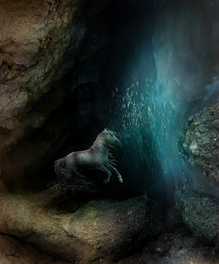 #blue #blueeyes #bubbles #dramaticlighting #horse #ocean #paintedhair #photomanipulation #remake #underwater
