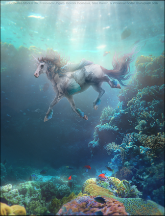 This is absolutely spectacular! I love the detail on the horse and the grace you placed on the hair! And to top it off, a literal sea horse!