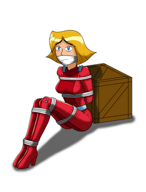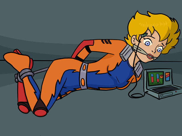looks likes she's trying hard to escape -- glad the ropes are tight