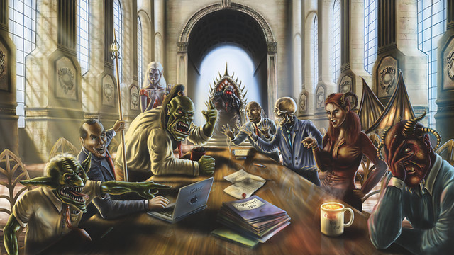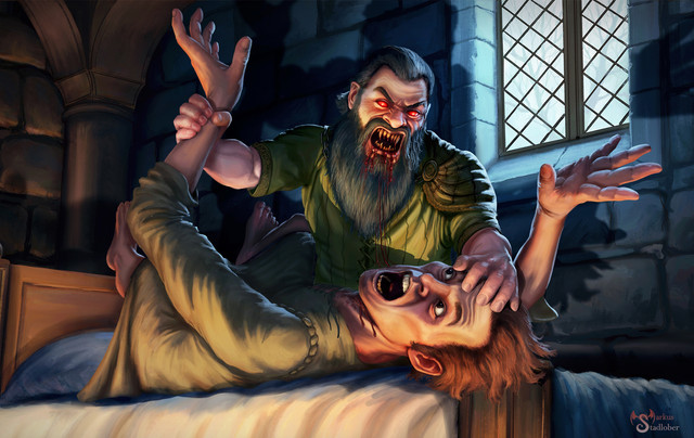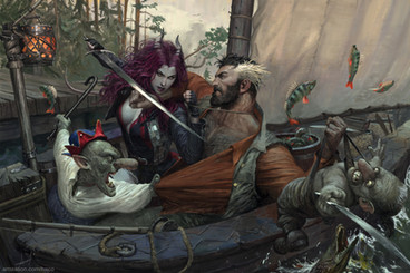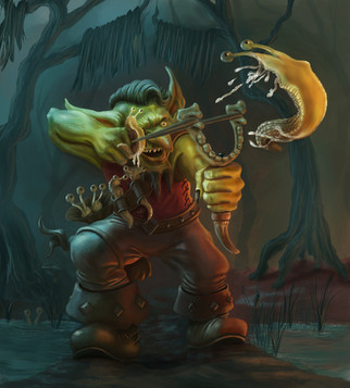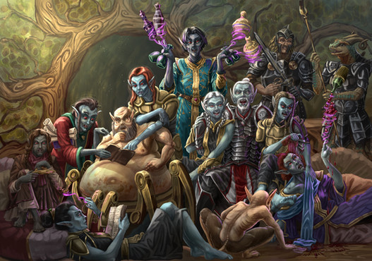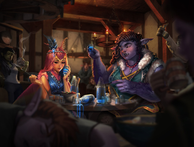 Tavern scene of a posh group of adventurers with their troll bard companion...Related content