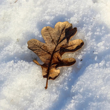 I found this little leaf on a walk while enjoying one of the few nice snowy days in my hometown. I thought it looked pretty cute so I took a photo of it.Related content