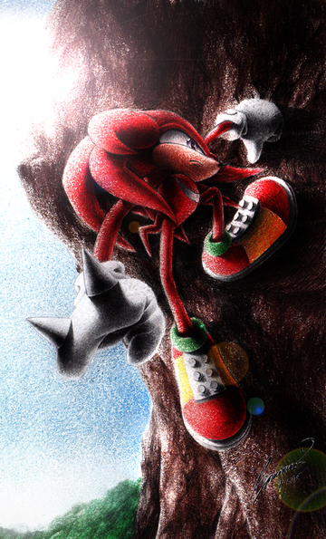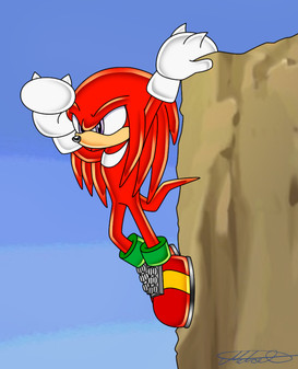 Where do I begin... the shading? Excellent job. You captured the lighting perfectly, almost as if the sun were shining directly on him. The background, also, excellent job. For vision: 4.5 stars. I like your style as well. I haven't seen a style out there that looks as unique as this. And his proportions I would have to congradulate you on as well. The only complaint I would have about this is you could have done a little more on the rocks to make them more believable. Therefore, technique: 3.5 stars. As for originality, I give you 5 stars because I've seen very few pictures of Knuckles doing one thing he is great at: climbing. The impact was great because I can tell what is in the picture, and it isn't a sloppy mess. 5 stars. Again, excellent job. e.deviantart.net/emoticons/s/s⦠" width="15" height="15" alt="