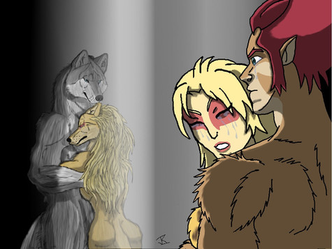 Randorn stares at her numbly as he sees a child who is an orphan.....and he was held responsible. His mind immediately went back to the images that burned into his skull: the revengeful fire within him lashing out into a Vixon village that was responsible for his eldest son's death, letting everything burn around him as his lightning blindly strikes anyone that got in the way. Randorn can still feel the white-hot hatred for Vixon Tribe because all he thought about was his dead son, but his chest feels heavy with guilt because his son would not tolerate revenge. He did bury everyone with the honor of his tribe, but that was not enough to lift his guilt. What made the whole thing worse was the fact he never counted on any survivors...