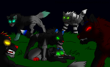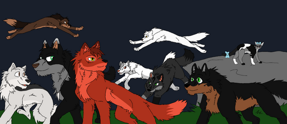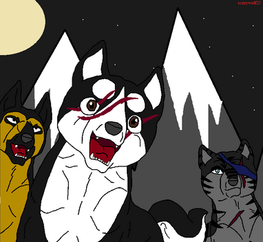 all my oc's for a story I want to write someday :3the 3 on the mountain are Kuro, Chaos, and Akuma