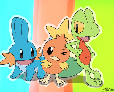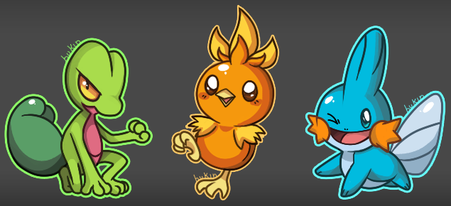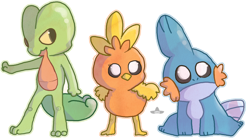 Quick drawing of the starters from Pokemon Omega Ruby and Alpha Sapphire c:Speaking of which, I have it preordered and am picking it up after school tomorrow, so if you don't hear from me for a few days that would be why xD
