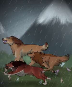 I love the background!! And the expressions on the wolves' faces. I feel very sorry for the deer.