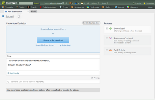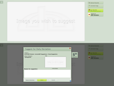 If you would like, I could update this suggestion to version seven of deviantART and send you a pair of images: One with my suggestions added in and one without. I would send the images to you by e-mail so that you could upload them as your own deviations. (But if you take the one with my ideas, please credit me for them )