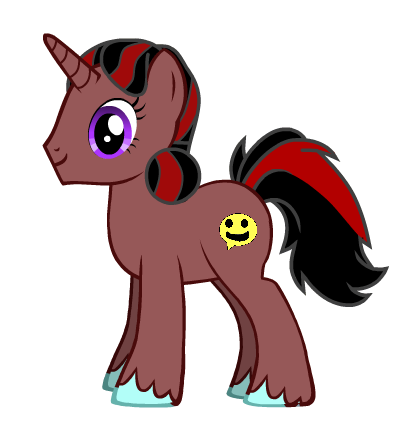 Cutie Mark: a dull pink happy face with a harlequin red and black jester hat