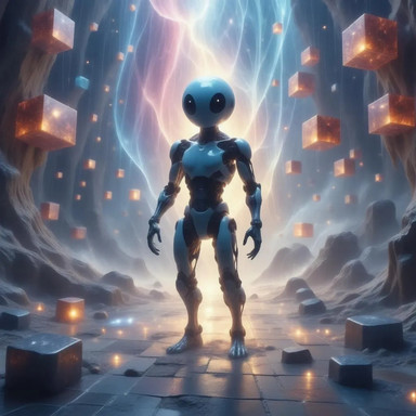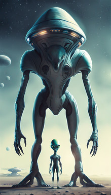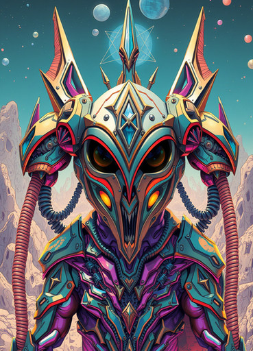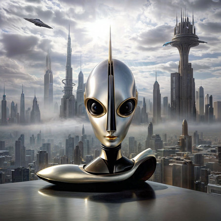 An alien creature explores the music of the spheres.Β This is the eighth in a series created with Bing Image Creator.