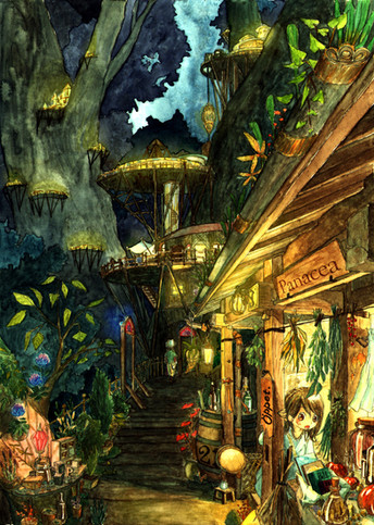 Hwah, this picture is absolutely lovely my dear, and it perfectly showcases exactly what I love about your art! The colors are gorgeous, the texture and such used perfectly throughout and I just love the idea itself... it's simple and such an ordinary "slice of life" in a way but executed beautifully. Also, I don't think I've ever mentioned it before but I stayed for a short time in Japan as well (and loved it there), so the building and style of this piece really appeal to me.