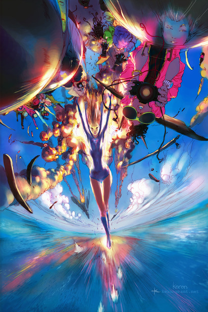 Ahhhh this picture is so incredibly awesome... there really are no other words to describe it! You've really captured such a dynamic energy and feeling of action in this piece, and all of the detail present is really incredible; the reflections there on the glassy surface are perfect! I really love this a lot.