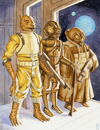 A little character art I did for a great tournament over at Penciljack. One of my favorite Star Wars characters, and he only got a few seconds of screen-time. He wasn't too lively in the movie, so I tried to get him moving a bit. All Photoshop.Related content