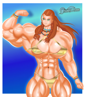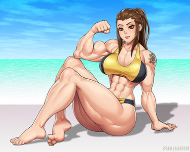 This drawing of Bigitte is srongly reminding me of Belle from Beauty and the Beast. On toppa that, you have captured her expression ever so beautifully. Her physique is more slim than bulky but in turn, the leenness is very strong and the ripped muscles adds an emphasis on the effort to build her body. The look of confidence she has really compliments her strong presence, its quite insiring really! I was interested in Brigitte because she reminded me of my Arisa(she) wasnt always dark skinned) and the muscular artwork of this one on DA has been quite impressive, but I felt inspired to critique this piece in detail right now because its well deserved. I do critique artworks here very othen but I had to this time.