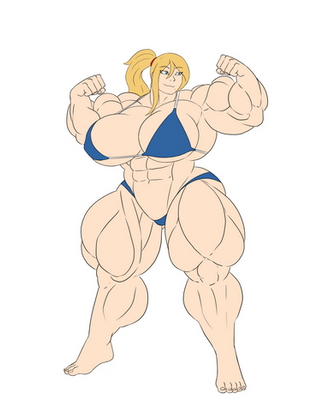 Very nice.Β Love her HUGE, sweet, sexy looks.Β Nice, sexy pose, and she has such a gorgeous, seductive look in her face.Β Her muscle tone and athletic physique are most impressive, and I like how her breasts stretch the fabric of her top to the max.Β What I find most impressive are the sexy, THICK curves of her sexy calves and thighs...Β her legs are beautfully drawn with their THICK, wide girth.Β Love how her thong bikini briefs show off her legs and hips.Β And, the sweaty sheen glistening on her skin brings out the curves of her muscle tone nicely and enhances her overall sex appeal.