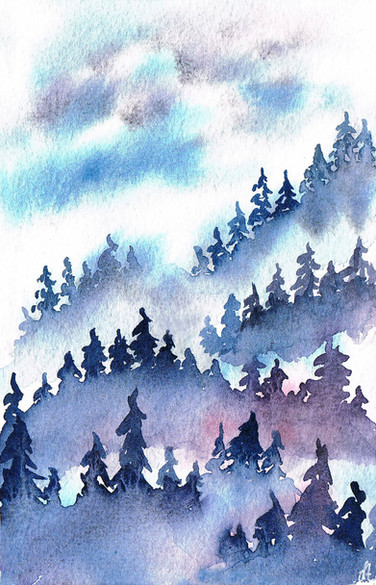 #blue #nature #pinetrees #poem #poetry #snow #trees #watercolor #white #winter #landscape #traditionallandscape