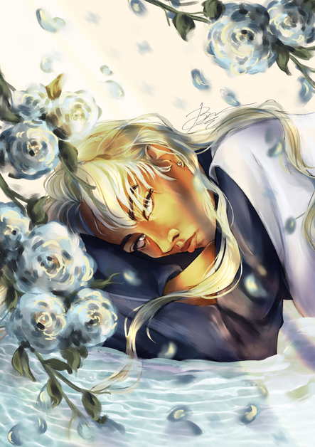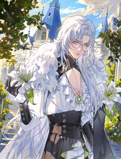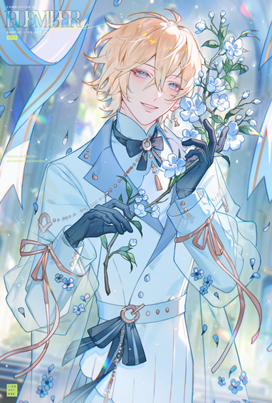 #anime #character #comm #commission #digitalart #digitalartwork #flowers #sparkles #white #whitehair #finishedcommission #half_body #opencommissions #art #halfbodycommission #commission_open #blue_eyes #suit #white_hair