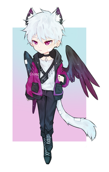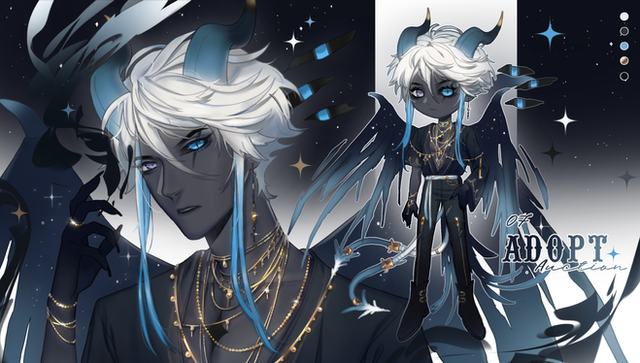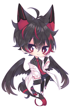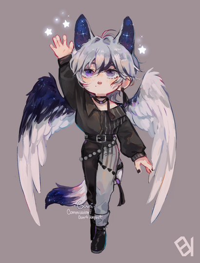 #anime #blue #character #comm #commission #cute #digitalart #digitalartwork #ears #horns #semichibi #stars #tails #wings #black_hair #finishedcommission #black_eye #opencommissions #art #commission_open #heterochromia #sparkles
