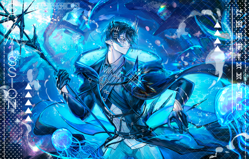 #anime #blue #cave #character #comm #commission #digitalart #digitalartwork #halfbody #lantern #light #soft #sparkles #finishedcommission #opencommissions #art #halfbodycommission #commission_open #longhair #white_hair #black_sclera
