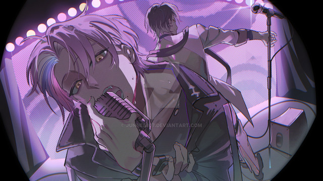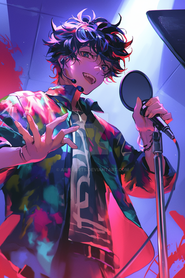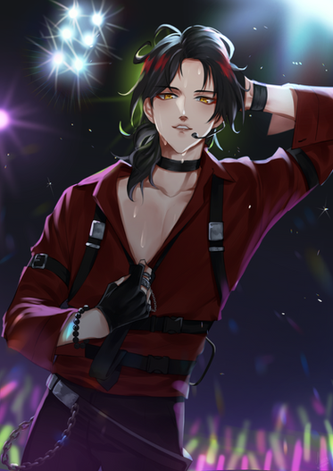 #anime #character #comm #commission #digitalart #digitalartwork #idol #mic #singer #singing #song #sparkles #black_hair #finishedcommission #purple_hair #half_body #opencommissions #art #halfbodycommission #commission_open #artist #microphone