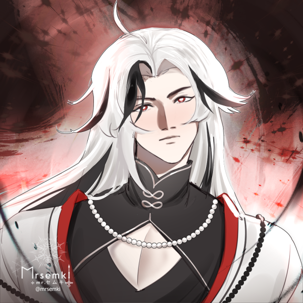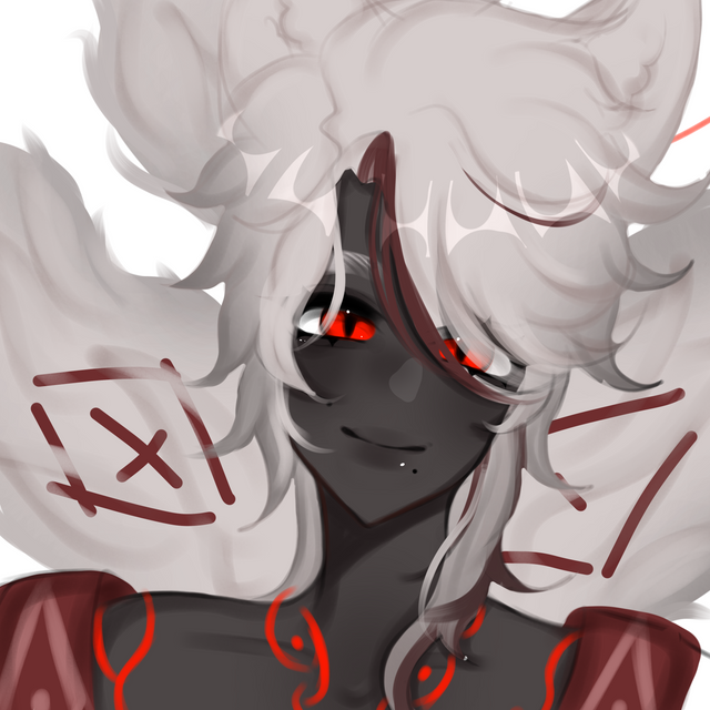 #anime #bust #character #comm #commission #demon #digitalart #digitalartwork #flame #headshot #horns #red #finishedcommission #white_hair #opencommissions #bustupcommission #art #bust_up #commission_open
