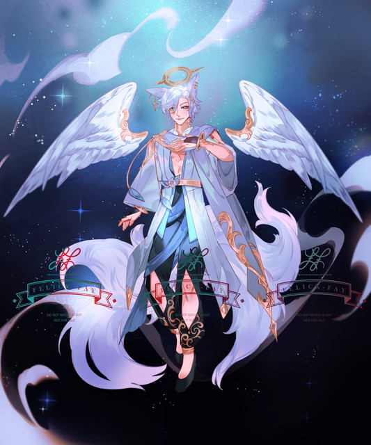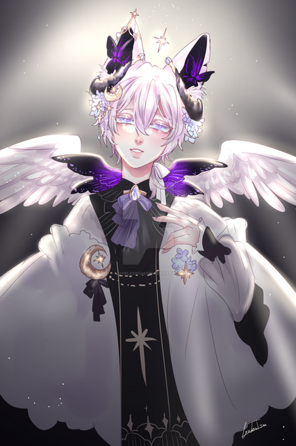 #anime #blue_eyes #character #comm #commission #digitalart #digitalartwork #halo #sparkles #white #whitehair #wings #finishedcommission #white_hair #half_body #opencommissions #art #halfbodycommission #commission_open #longhair