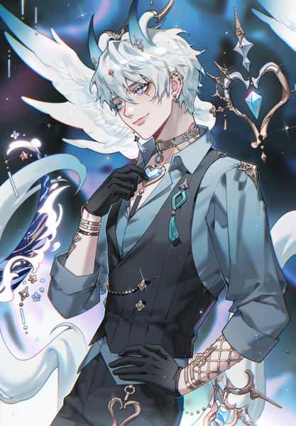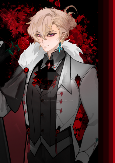 #anime #character #comm #commission #digitalart #digitalartwork #halfbody #soft #sparkles #suit #finishedcommission #opencommissions #art #halfbodycommission #commission_open #red_eyes #white_hair