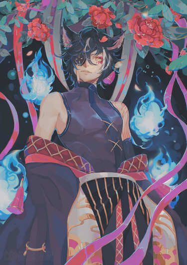 #digitalart #anime #animedrawing #animeboy #digitalpainting #portrait #characterillustration #comm #commission #digitalartwork #fantasyart #fantasycharacter #halfbody #japanese #magic #red #sparkles #halfbodycommission