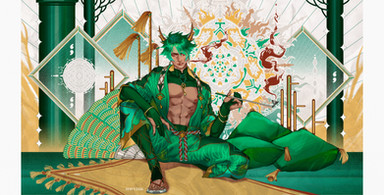 #digitalart #anime #animedrawing #animeboy #digitalpainting #character #characterillustration #comm #commission #digitalartwork #fantasyart #fantasycharacter #greenhair #halfbody #pillow #portrait #sparkles #art #halfbodycommission