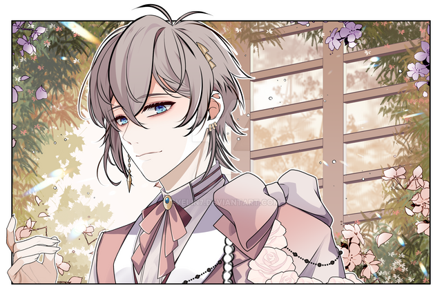 #digitalart #anime #animeboy #animedrawing #blondehair #blue #character #characterillustration #comm #commission #digitalartwork #digitalpainting #fantasyart #fantasycharacter #flowers #halfbody #portrait #sparkles #blondeblueeyes #art #halfbodycommission