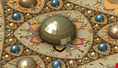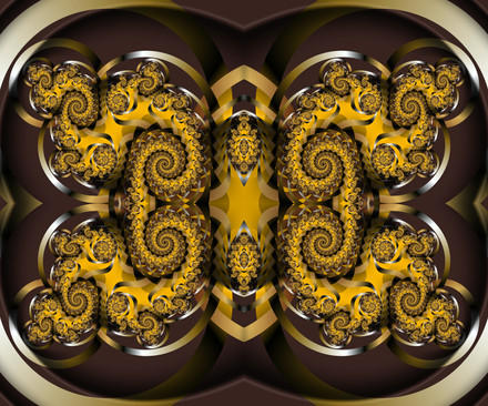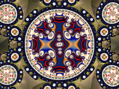 A Julia set coloured using the angle of the final complex value for each point.I find these abstract pictures hard to name, however, it does have spirals and there is a sort of patchwork effect.