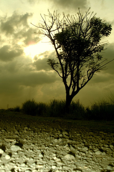 Amazing. Very surreal. I love the lighting and color. I really like how the tree isn't a flat black silhoette. It gives it a dead/ghostly feel.