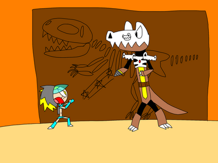 A roboticized minotaur cowgirl who went riled up with all of her destructive forces of her Quake Drill. Try to fly over the crumbling restricted areas in the wild plains and don’t get crush by many boulders!