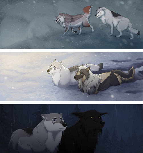 I think I like the first image the best somehow. The way Blade lays there, head truned away while Coro and Aik snuggled together, looking at his back.. that's such a neat picture. Really.
