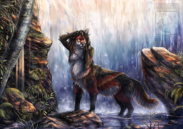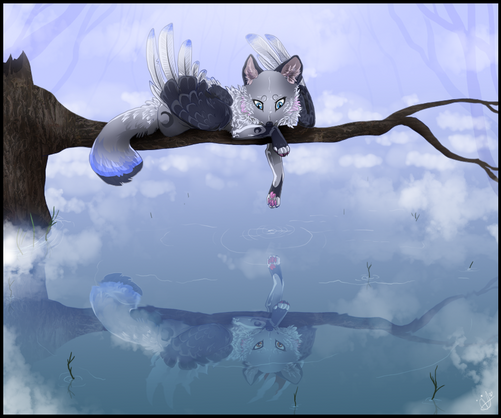 #animal #anthro #bird #canine #cat #commission #coyote #crow #dhole #digital #forest #fox #illustration #kitsune #kross #lake #lynx #realistic #reflection #trees #twilight #vulpine #water #wood #elementalspirits #heleasher #xeshaire #itsprobablymars #tamaskakitsu #leucisticlynx