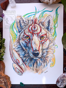 Snarling Amaterasu! The other rejected wolf Link designs for a tattoo commission a while ago that I decided to develop as a charm design. I'm not sure if I ever drew Amaterasu before this? I loved the game though, I need to play it again.