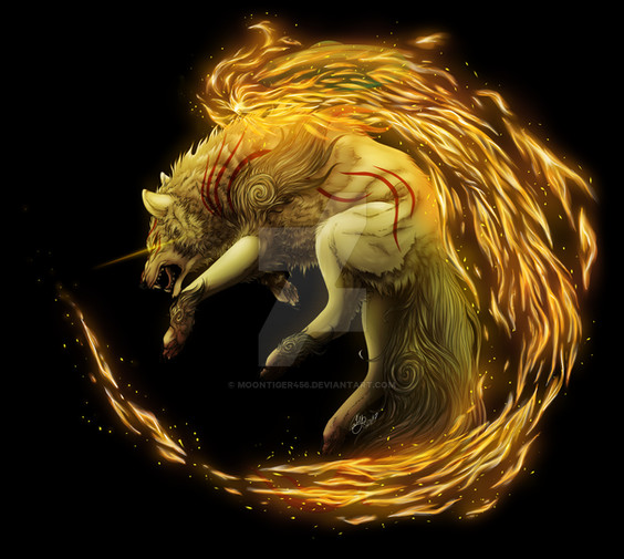 When I saw this long critique I expected it to be negative, but I'm presently surprised. Thank you for taking the time to write down such in depth thoughts about this picture. It's really nice to hear what people think about my work. I'm not sure why they remind you of Shiranui more, perhaps it is the flames as Shiranui's seem to swirl around more then Amaterasu's? (Even though they are red instead of multicoloured). It is the only thing I can think of at least as other then markings I think they look the same.