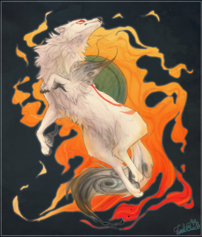 Why, Amaterasu. If there was something I didn't expect to see, this is it. The realistic approach you chose to use really does justice to the character; for some reason, though, looking at this piece reminds me of Shiranui, rather than Ammy herself. Weren't for Issun being his usual bouncy self, I'd probably be fooled.