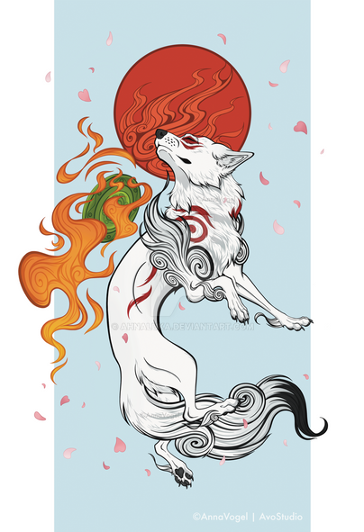 I love your more realistic approach to Shiranui aka Amaterasu. She looks gorgeous. I kept with the more traditional ink-painting style for my rendition myself, but honestly this could just as easily pass for a Miyazaki conceptual piece with the detail and beauty.