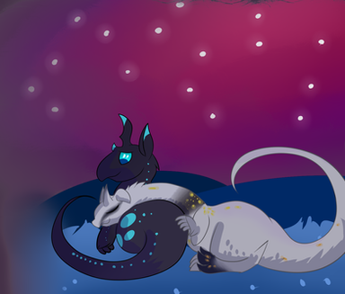 #couple #dragon #nighttime #galaxystars
